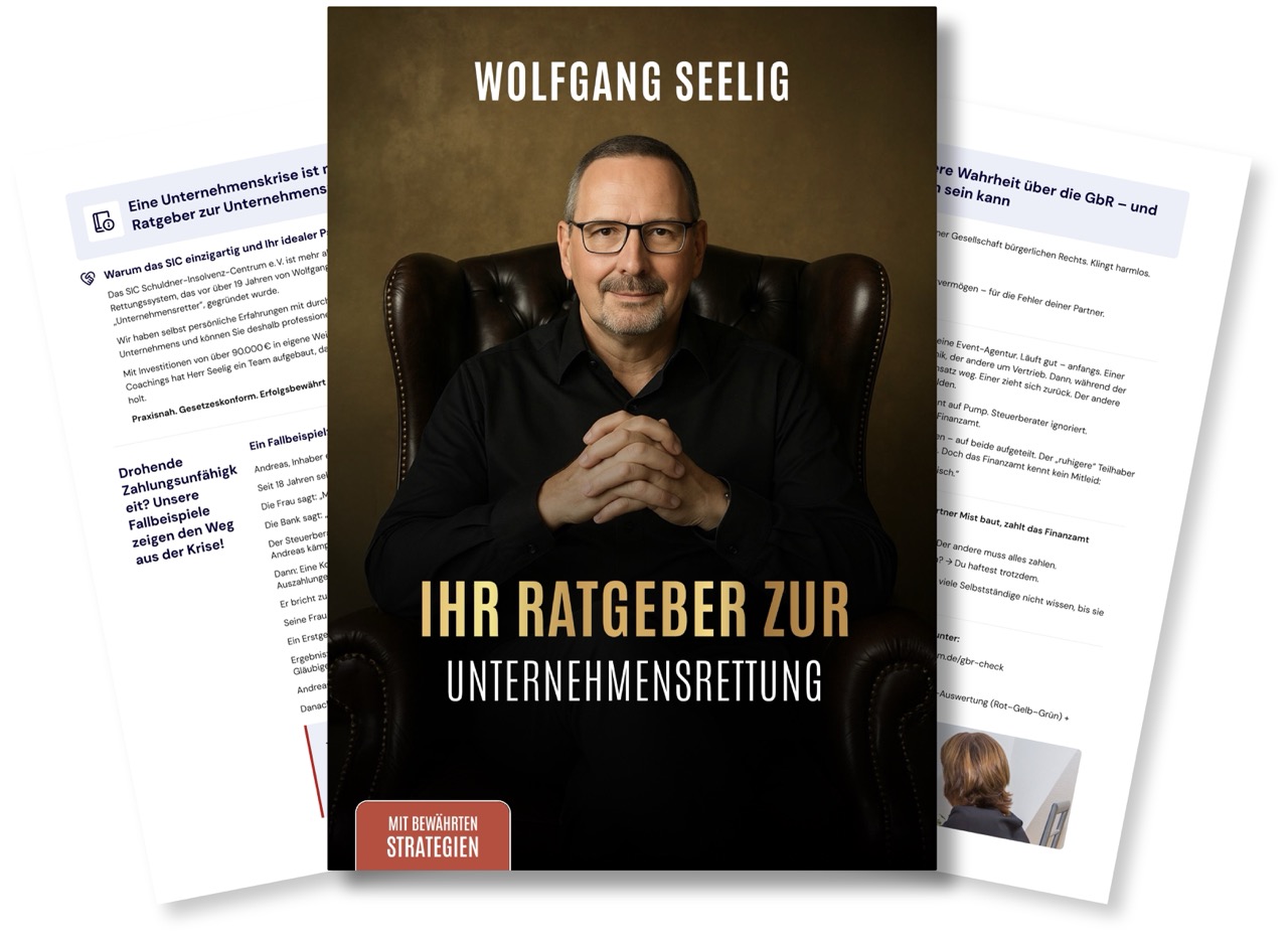 Wenn du jetzt nichts änderst, werden es bald andere für dich tun: Gericht, Gläubiger, Insolvenzverwalter. Wir vom S.I.C. e.V. helfen Unternehmern dabei, die Kontrolle zurückzugewinnen, bevor es zu spät ist. Mit klarem Plan, klaren Worten und dem Ziel, deine Werte zu sichern und dein Unternehmen wieder auf Kurs zu bringen.